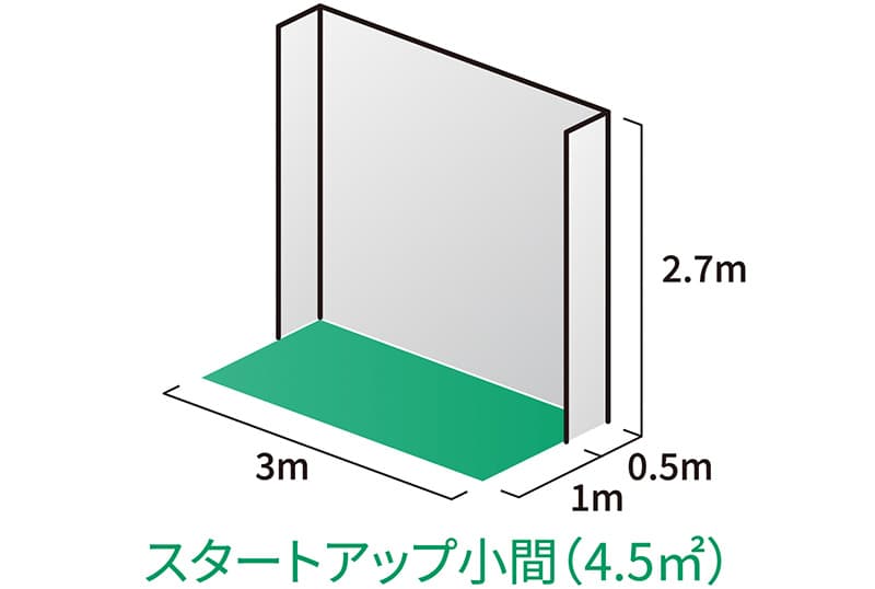 - 基礎小間には、隣接する小間がある場合、境界を仕切るバックパネル、サイドパネルを事務局が設置します。
