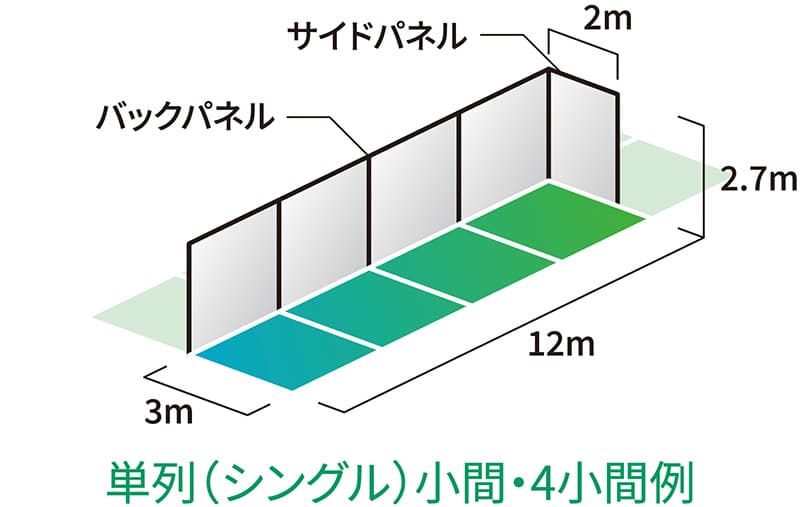 - 角小間など隣接する小間がない場合、サイドパネルは設置しません。