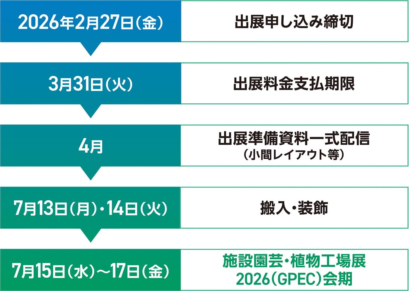 出展申込締切日は下記の通りです。(但し、予定小間数に達し次第締切ります)